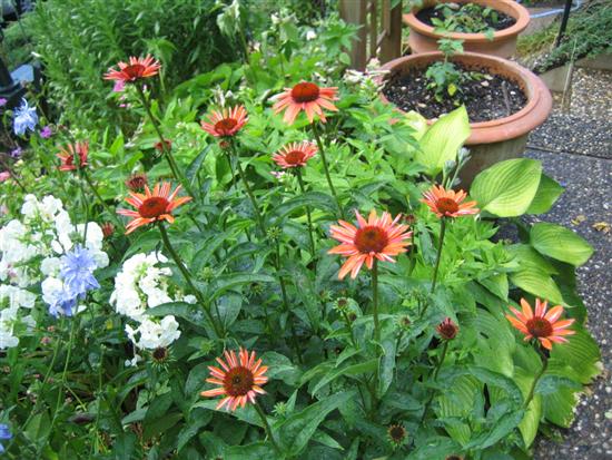 ich hatte auch letztes jahr 3 echinacea blühend gekauft und mußte sie nach dem setzen beinahe täglich gießen. heuer nehme ich es nicht mehr so genau. sie lassen manchmal die köpfe hängen, erholen sich aber abends wieder. ich nehme an, daß sie die pralle mittagssonne nicht so sehr schätzen.neulich sah ich echinacea "tomato soup" .... wunderbare farbe im sonnenlicht. konnte mich aber zurückhalten