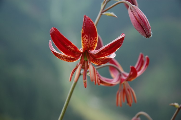 es ist wirklich eine zarte lilie, ca um die 60 cm (im katalog steht 120)die weissen martagons sind beinah doppelt so hochden idealen platz suche ich noch, man sollte von unten hineinschauen könnengut dass mein garten ein hang ist