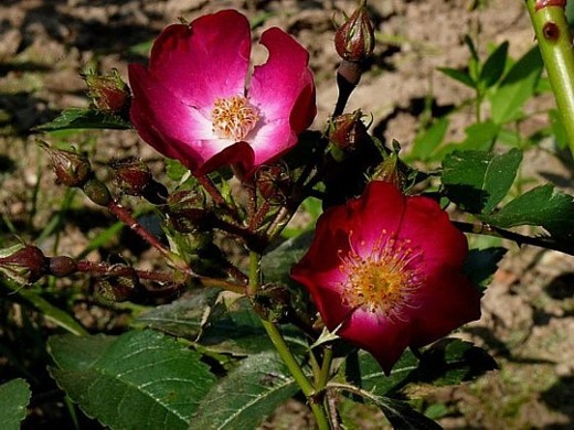 Hallo,dieser Sämling blühte im Alter von drei Jahren zum ersten Mal. Mutter ist R. spinosissima `Single Red`. Bestäubt habe ich mit Pollen von R. roxburghii ssp. normalis. Blütengröße ca. 8cm.