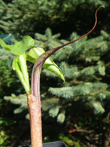 Ich kann die Leute verstehen, die auf diese Stinker abfahren. Meine Erfolge sind eher durchwachsen. Zwar hatte ich jahrelang einen schönen A. fargesii auf dem Balkon, der aber im letzten Winter bis auf eine Brutknolle verfault ist. Diese schiebt immerhin ihr breites Blatt, und ich werde in Zukunft besser aufpassen.Beim zweiten Arisaema habe ich mehr Glück gehabt. A. tortuosum ist mit mit seiner Blatthöhe von über 1,5 m zuerst in Wakehurst Place aufgefallen. Ein netter Gärtner eines Botanischen Gartens hat mir dann ein paar kleine Knollen geschenkt, von denen momentan 2 blühen.:)Michael