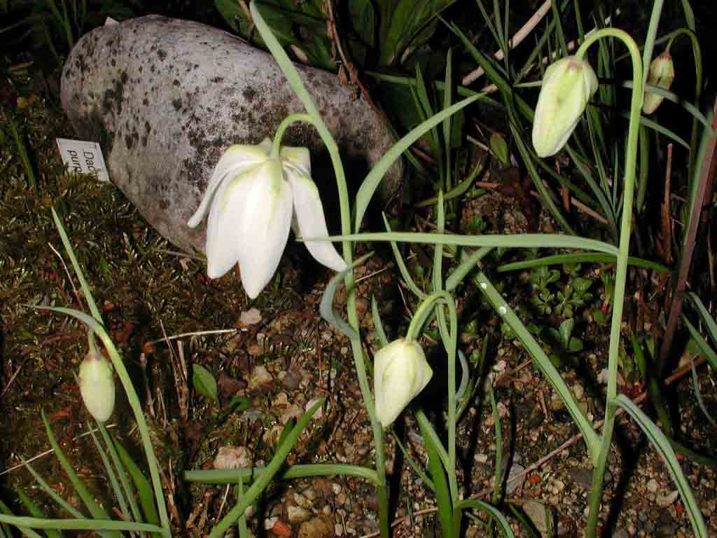 Hallo,heute mal ein kurzer Bericht zu einem Kulturversuch mit Fritillaria meleagris: Ich hatte schon mehrfach gepostet, dass ich ein "Standardsubstrat" auf der Basis von Perlite/Bims/Seramis verwende. Ich habe selbiges Substrat auch im "Sumpfkübel" (Mörtelkübel 90l) eingesetzt, um damit die Kultur von feuchtigkeitsliebenden Erdorchideen zu versuchen. Der Aufbau ist so gehalten, dass unterhalb des Substrats ein Wasservolumen existiert, das stets auf derselben Höhe gehalten werden kann, und zwar durch Zugabe von Wasser durch das Rohr (damit kann der Wasserstand auch kontrolliert werden, sonst durch einen Stein abgedeckt) bzw. durch den Ablauf überschüssigen Wassers durch seitliche Bohrungen im Kübel.Zu den Orchideen habe ich vor zwei Jahren auch einige Sämlinge von Fritillaria meleagris eingebracht, die sich sehr gut entwickelt haben. Auch mit der Entwicklung der Orchideen bin ich zufrieden (sie treiben gerade erst aus). Man kann diese Kübel zusätzlich 100% wühlmaussicher gestalten, indem man knapp unter der Oberfläche flächendeckend auch noch kunststoffummantelten "Mäusedraht" einbringt.