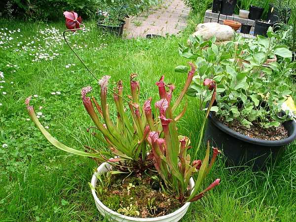 Irgendwann mache ich mal ein Moorbeet - nur wegen der Sarracenien - die finde ich einfach tollDie Sarracenienblüte wurde heute von ein paar Besuchern als Orchideen bezeichnet.