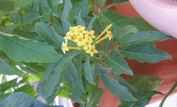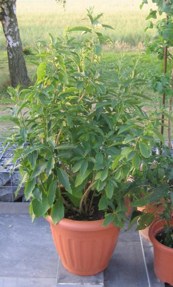 Hallo,auf meiner Terrasse steht eine Kübelpflanze, die dieses Jahr zum ersten mal blüht. Ich habe sie aus Samen gezogen, die mir zugeflogen sind, ohne Namen. Weiss jemand, womit ich sie zukünftig anreden darf?Viele GrüßeSabine