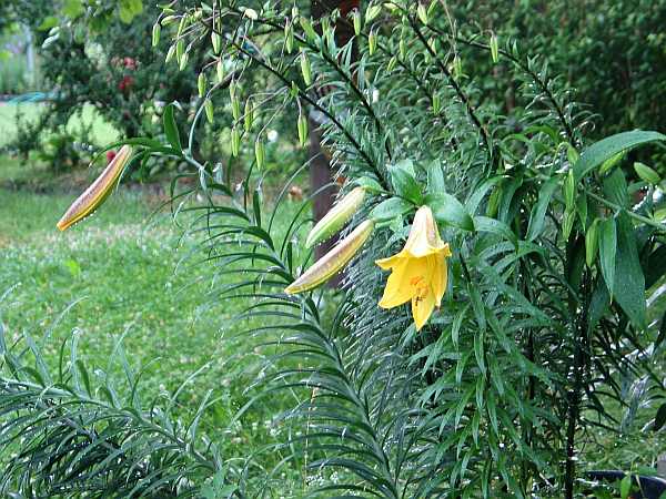 also, dann zeige ich sie hier nochmal:lilium longiflorum "white american"sie ist ganzjährig ausgepflanzt. geschützt im winter mit einem haufen nußlaub.