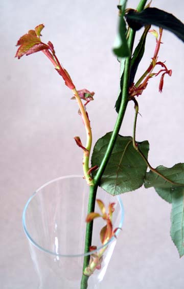 Hallo ihr lieben, ich hab da mal wieder eine Frage. Vergangenen Samstag hab ich auf dem Flohmarkt bei einem fliegenden Holländer 20 weiße Schnittrosen gekauft. Schon beim Anschnitt fiel mir auf, daß sie in den Blattachsen (?) oder Knoten treiben. Mittlerweile sind die Triebe sehr groß. (s. Foto) und ich frage mich was tun, zumal die Blüte auch sehr schön ist und angenehm duftet. Muß man sie auf irgendwas pfropfen? veredeln??? und wie genau geht das? Wie kann man sie bewurzeln? Ich weiß: Fragen über Fragen