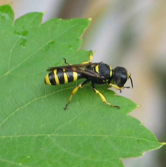 Den hab ich aus der Regentonne meines Nachbarn gerettet. Hat mich an den Bienenwolf erinnert ist er aber nicht, glaub ich. Hatte nur zwei kurze senkrechte Streifen im Gesicht und sieht viel grimmiger aus.