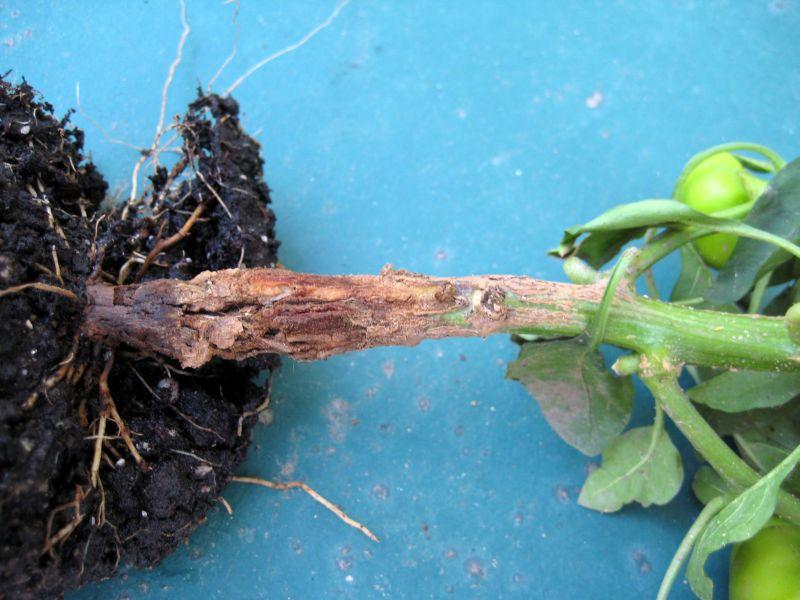 ;)Siehst fast wie Rhizoctonia oder ähnliches aus. Rhizoctonia ist es dann, wenn es eine Trockenfäule ist und halbseitig anfing.Bei einer Nassfäule kommen eher Phytophthora oder Botrytis in Frage, bei letzterem würest du aber spätestens jetzt den typischen grauen Schimmel-/Sporenrasen sehen.Tun kannst du dagegen in Paprika wenig bis gar nichts, befallene Pflanzen solltest umgehend entfernen und vernichten (Mülltonne)!Vorbeugend hilft eine eher trockene Kulturführung, ein lockeres und luftiges Substrat und das Vermeiden von Salzstress. Letzterer kann durch hohe Düngergaben ebenso verursacht werden wie durch hohe Kompostanteile im Substrat.Zumindest gegen Rhizoctonia und Bortytis könntest du vorbeugend Pflanzenstärkungsmittel auf Basis von Trichoderma sp. und/oder Bacillus subtilis einsetzen wobei Letzterer auch eine gewisse Wirkung auf Phytophthora haben mag.Liebe Grüße,Daniel