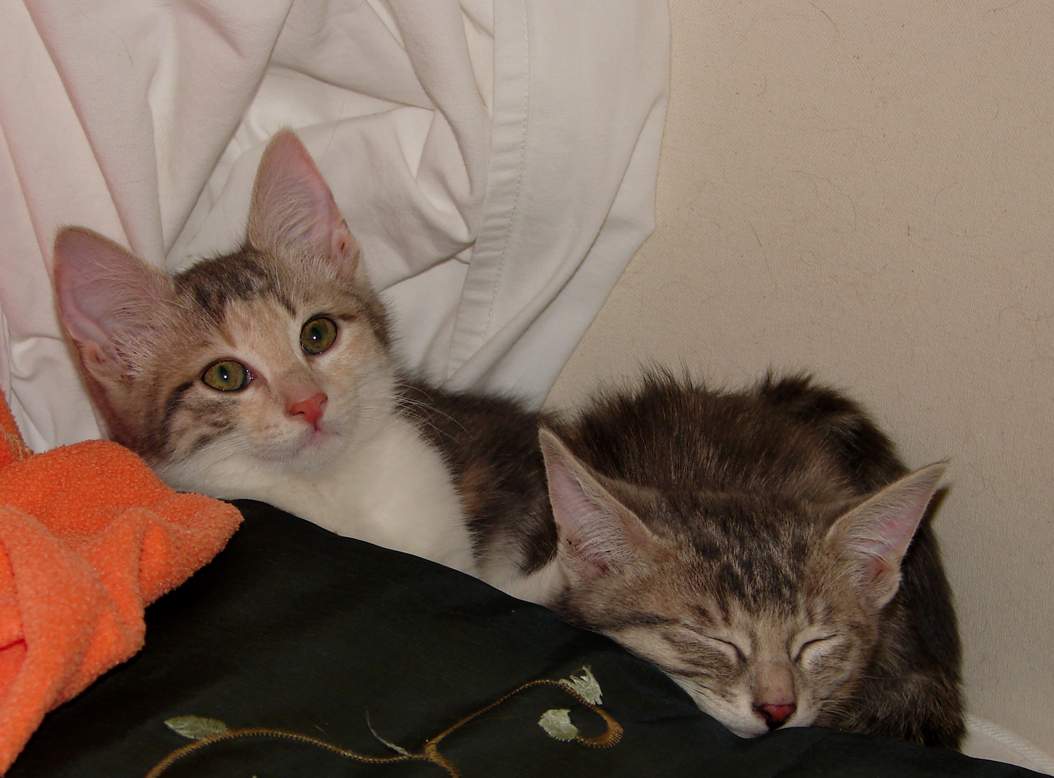 so, damit ich nicht nur schreckensmeldungen verbreite, hier noch ein foto von vorhin mit nellie und luzie beim schläfchen im sessel, ich hatte sie mal länger mit der kleinen zusammen hier oben.luzie ist zwar auch auffällig, aber sie war ja heut abend mit beim tierarzt, hoffen wir, dass das medikament gleich greift, bevors kritisch wird.lggraugrün