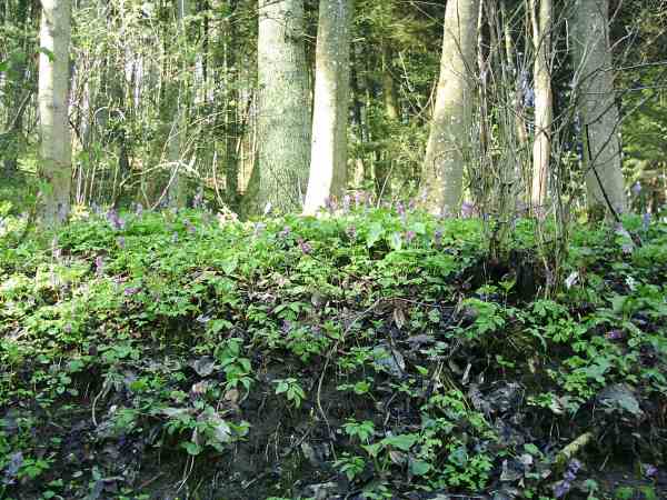 :DUnd dann der erste Eindruck, es war umwerfend. Überall Corydalis cava, weisse und violette. Je nach dem, wie alt sie schon waren, war die Farbe blass oder Kräftiger.