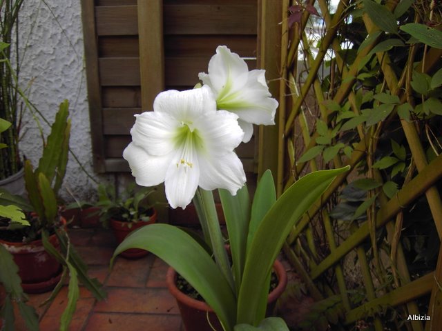 Ich habe letzten Dezember eine blühende weiße Amaryllis geschenkt bekommen. Die habe ich im Frühjahr in einen größeren Topf umgepflanzt und noch Kompost beigefügt.Sie hat jetzt erneut einen Blütenstängel geschoben und fängt auch gerade wieder an zu blühen. Steht allerdings schon im neuen Garten. Mal schauen, ob ich vor dem Umzug noch ein Foto hinbekomme.