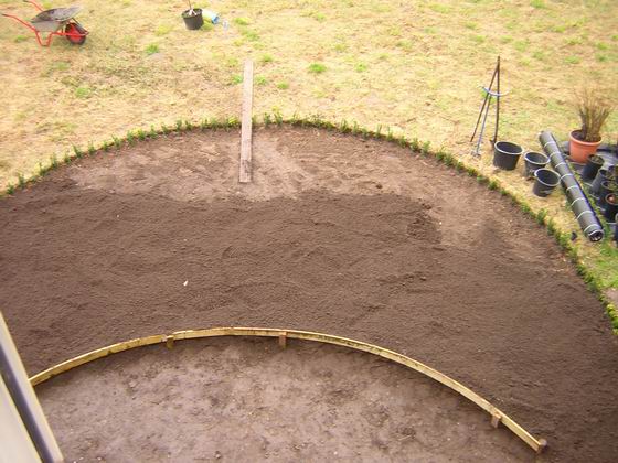 Du freust dich bestimmt schon auf das Bepflanzen des Rondeels,was?Ich würde erst gar nicht so eine professionelle Arbeitseinschalung zustande bringen!