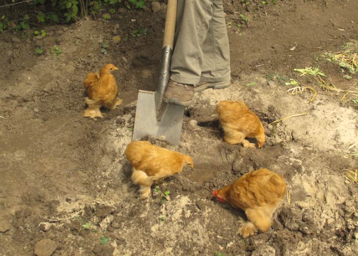 Beim ersten Spatenstich wollten die Hühner natürlich auch dabei sein.Allerdings drosselte es das Tempo doch zu sehr, jeden Aushub genaustens kontrolliert zu bekommen...