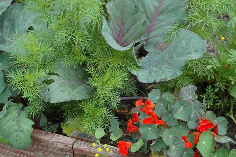 Diesen schönen Garten mit vielen Blumen zwischen dem Gemüse habe ich 2 Wochen lang täglich bewundert.