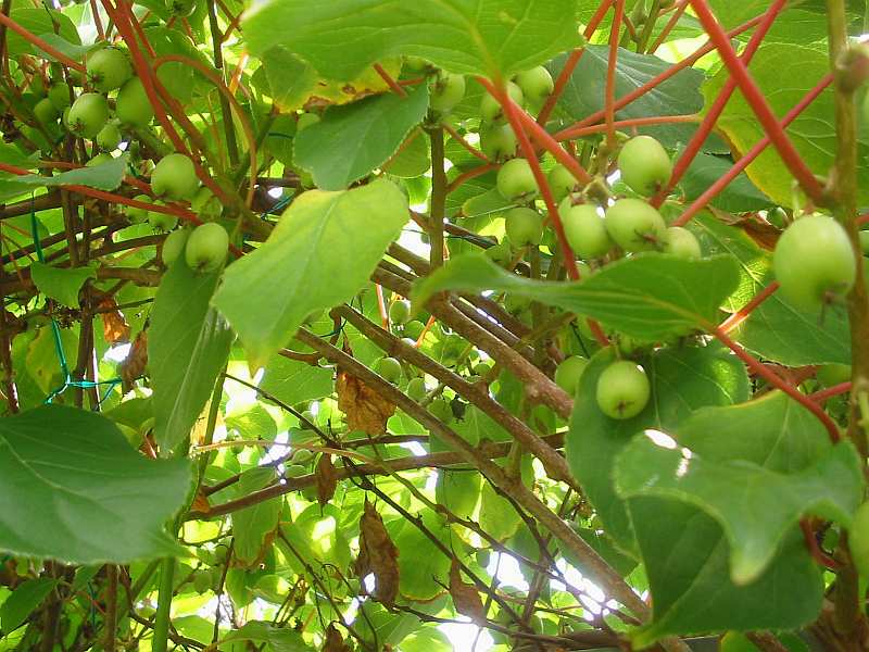 edit: Erdbeeren keine, trotz schöner Blüte und reichlich Ansätzen und auch neuen Pflanzen haben alles die Mäuse gefressen, teilweise incl. Blättern. Äpfel haben wir dieses Jahr sehr wenige, es war zu kalt zur Blütezeit und kaum Bienen unterwegs. Die anderen Obstbäume sind noch sehr jung und müssen erst anwachsen (Pflaume, Birne, weitere Äpfel). Ein paar Kirschen gab es, die haben aber die Vögel als erste geerntet. Der im letzten Jahr gepflanzte Apfelquitten-Baum trägt zum allerersten Mal, ich hoffe, ein paar Früchte bleiben hängen.Traubenholunder gab es dieses Jahr im Gegensatz zum letzten so gut, wie keinen, auch der schwarze Holunder hat trotz guter Blüte kaum Früchte, vielleicht sind die Vögel diese Mal aber auch sehr schnelll.Himbeeren (Wilde) diese Jahr wohl wegen der Trockenheit keine (Letztes Jahr dafür um so mehr).Die stachellosen Brombeeren haben sehr gut angesetzt, da rechne ich mit einer guten Ernte.Johannisbeeren haben mittelprächtig angesetzt, leider haben die Vögel dieses Jahr die roten trotz Netzen fast komplett geerntet, für Gelee reichte es nur bei den Rosafarbenen.Jostabeeren genauso und gerade plündern sie auch die Heidelbeeren, trotz der Netze, sie schlüpfen rein, wie Mäuse und picken auch von außen alles erreichbare ab.Dafür tragen die Weiki-Kiwis sehr reichlich (zweites Jahr mit Früchten, gepflanzt 2006). Dieses Mal scheinen die Früchte auch schön grün und glatt zu sein, letztes Jahr zeigten sie noch viele Atavismen, die auf die braune, schuppige Kiwi-Haut hindeuteten.