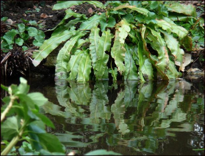 Dieses Exemplar hat sich den Wasserrand ausgesucht. Der 'Partner' links daneben ist ein Trichterfarn.