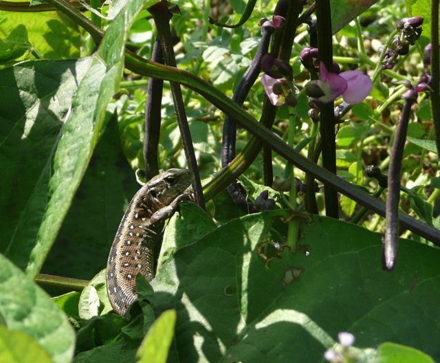 ich habe im Garten lange keine Eidechsen gesehen...Eigentlich wollte ich Bohnen ernten. Ich habe innegehalten, weil ich das Gefühl hatte, dass mich jemand anschaut. Und es schaute mich wirklich jemand an. Das Bohnenernten hab ich dann erst mal gelassen.![]()