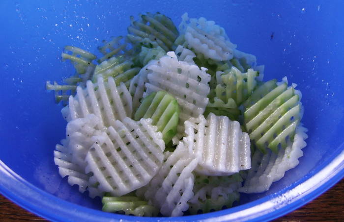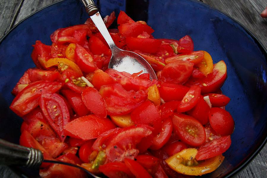 Auch mit Salat, der Abwechslung halber aber mit oranger Schüssel