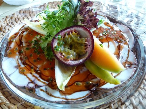 ich war auswärts:Tintenfisch-Carpaccio mit pikanter Passionsfruchtsauce