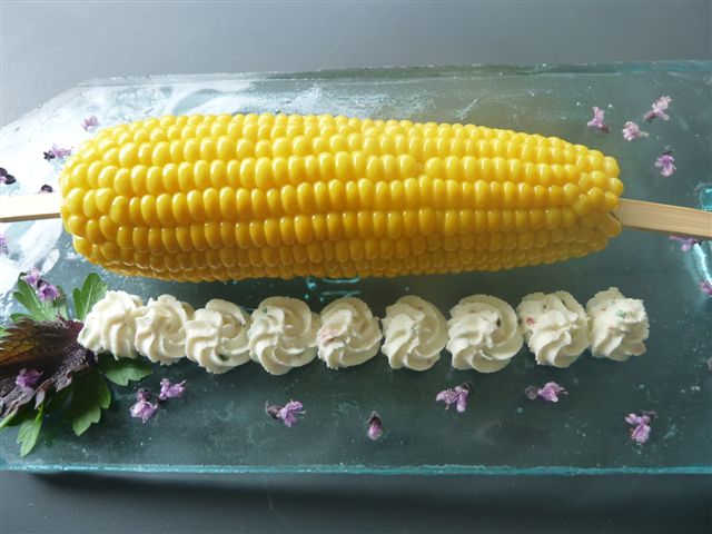 Süssmais mit Ziegenfrischkäse und ein Kartoffelnussbrötchen