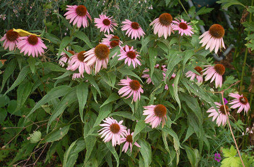 Ich habe den Eindruck, dass Echinaceen in ärmeren Böden kaum genug Nahrung bekommen können. Ungedüngt halten sie bei mir keine drei Jahre durch. Mit kräftigen Gaben von Kompost, Blaukorn, Hornspänen - das alles und jeweils reichlich halten sie sich ganz passabel. Tiefgründiger Humusboden scheint ihnen ebenfalls zuzusagen. Schwarzerdeherkunft?
