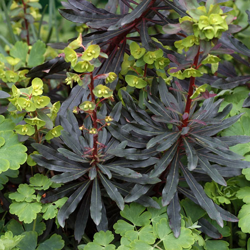 Hier eine gestrige Aufnahme von E. amygdaloides "Purpurea" aus meinem Garten, die sich deutlich von Farbe und Habitus des Exemplars in Bild # 24 und # 25 unterscheidet.Keine weiteren Ideen?
