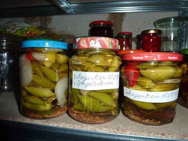 Buchsini, bitte Rezept :)Meine Inkagurken blühen in Hülle und Fülle und bald gehts ans Ernten.Erntest Du sie ganz jung so zum Einmachen?Ich esse die jungen auch gerne roh oder ich brate/dünste sie in etwas Butter mit Knoblauch, schmeckt auch gut.Regengrüsse von July