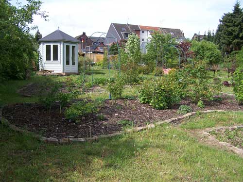 Die meine ich. Ich hoffe, Du kannst auf den Bildern etwas erkennen. Auf dem zweiten Bild sind die Bögen komplett von den Himbeeren zugewuchert. Hab Rosenbogen darüber geschrieben. Ein klitzekleines Bogenstück ist oben noch zu erkennen.
