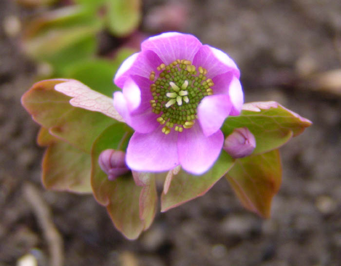 Gerade habe ich den richtigen Moment erwischt, bevor sie wieder vom Winde verweht ist: die Blüte der Jeffersonia dubia.