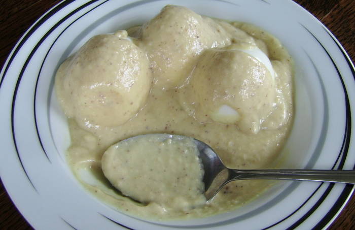 Danach Eier in Senfsoße. Sieht jetzt auch nicht sooo hübsch aus, aber es hat geschmeckt.