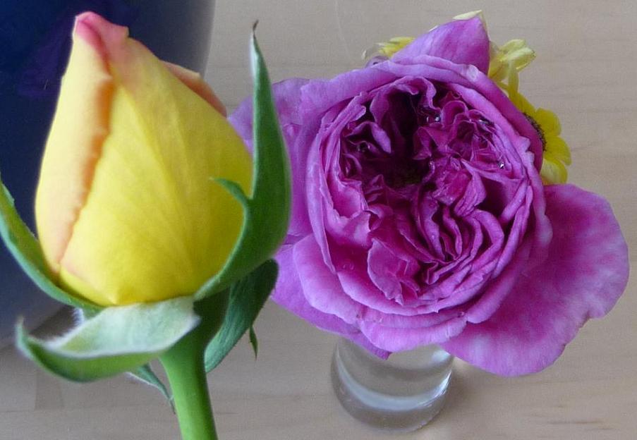 zum Glück sind noch 3 Knospen dran. Das gelbe ist übrigens eine Knospe von Gloria Dei, die ich bereits nicht mehr habe, die hat beim besten Willen nicht mehr in den riesigen Karton gepasst...