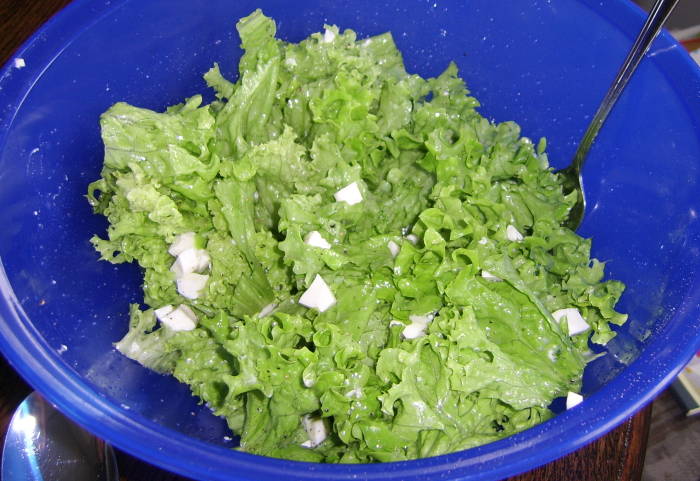Heute wieder Bohnensalat. Seit Wochen im täglichen Wechsel mit Kopf-, Gurken- und Tomatensalat........Trotzdem läcker.