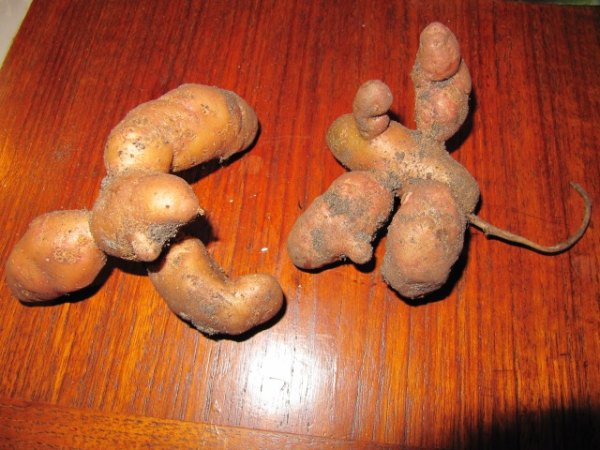 Ich habe heute die vorletzten Kartoffeln geerntet, sehr viele ganz kleine, etliche recht große und dann auch einige äußerst merkwürdig geformte. Woher kommt so was?