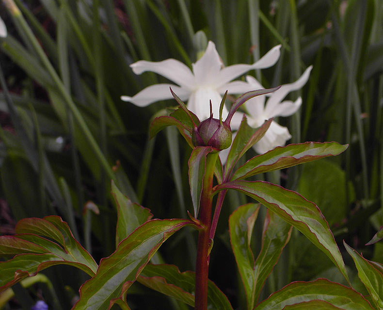 Diese Staudenpäonie wurde im letzten Herbst umgepflanzt. Dabei mußte ich eine fingerdicke Wurzel durchtrennen. Bisher bin ich ganz zufrieden. Ich glaube, sie blüht weiß gefüllt.
