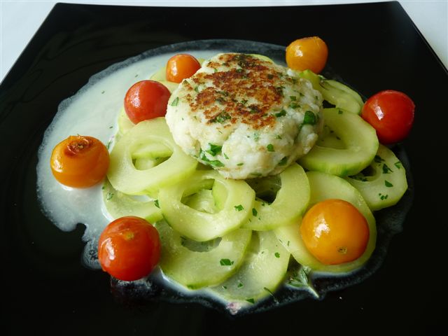 Dorsch an Zitronensauce, gertüffeltes KartoffelpuréeTrüffel frisch aus Italien