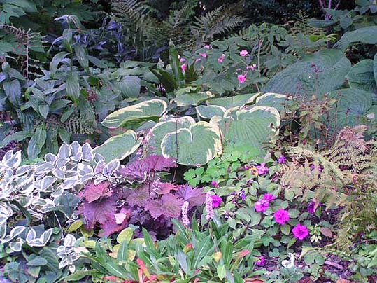 Stimmt Martina, Glockenblumen muss ich noch dorthin setzen, danke! Die passen gut, das denke ich auch... :DBei mir wachsen: Heuchera macrantha 'Palace Purple'Vinca major(minor?) 'Variegata'Hosta 'Frances Williams' + sieboldiana + fortunei 'Albomarginata' + 'Sweetie'Epimedium x rubrum, E. x versicolor 'Sulphureum', E. perralchicum 'Frohnleiten'Dryopteris filix-masAsplenium scolopendriumAstilbeAruncus dioicusOmphalodes vernaThalictrum aquilegifoliumPersicaria bistorta 'Superba', P. bodendeckend?Geranium dalmaticum (ganz untypisch, eigentlich für Vollsonne)Geranium x cantabrigienseGeranium macrorrhizumArum italicum 'Marmoratum'die fallen mir momentan ein, bin aber in der Schule und kann für die richtige Schreibung der Namen nicht garantieren und vollständig ist die Liste auch nicht...VLG; KatrinTolmi, wir hatten am 16.Juni Regen und dann erst wieder am 1.August und dann wieder Mitte September...