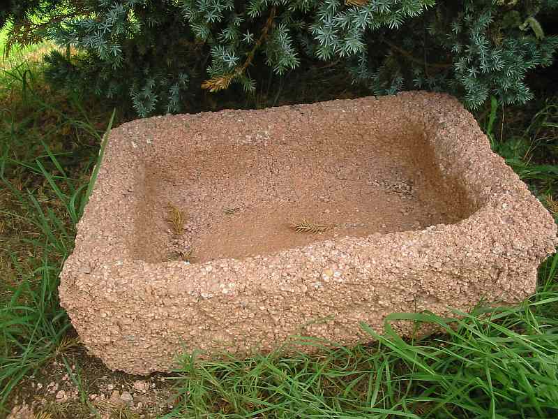 Hier gibt es Sandstein so viel man haben möchte. Ich hatte GG ein Tringeld versprochen, wenn er mir aus solch einem nicht zu großen Stein eine flache Vogeltränke machen würde. Hat nicht geklappt, der Stein ist sofort zerbrochen.Es ist also nicht leicht selber einen Trog aus einem Steinblock zu steinmetzen. Trinkgeld für den Steinmetz ist vielversprechenderIm Sächsischen und den angrenzenden Ländereien findet man in Abrissgrundstücken hin und wieder Sandsteinquader. Für ein Trinkgeld arbeitet unser Steinmetz daraus wunderschöne Pflanztröge. Fotos kommen nach.