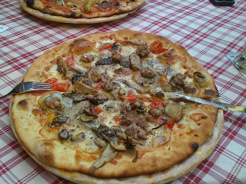 belegt u.a. mit frischen steinpilzen und salsicce...