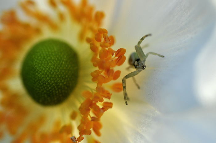 Wespenspinnen habe ich bei mir im Garten noch nicht entdeckt, schade.Aber ganz viele junge Krabbenspinnen: