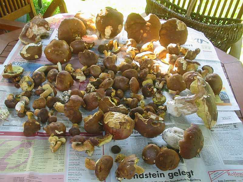 Nicht, dass es langweilig wird, aber ich musste heute doch mal wieder in die Pilze. Die Steinpilze vor der Tür haben noch nicht richtig nachgelegt, also bin ich etwas weiter richtung Ortsmitte gewandert und hab reichlich Maronen gefunden, diese Woche scheint die Woche der Rotfußröhrlinge zu sein, es gibt unglaublich viele, auch in wirklich guter Qualität, aber die wollte ich nicht, auf dem Rückweg hab ich dann doch noch einige Steinpilze und eine andere, zunächst erschrockene Pilzsammlerin mit Korb im Wald entdeckt.Außer den Pilzen hab ich noch einen hellgrünen, stark gerippten Kürbis geerntet, aber ich muß erst nachgucken, was das für einer sein könnte/was ich überhaupt gesät habe. Zu den Pilzen gibt es dann heute noch frischen, buntenGartensalat und zum Knabbern Monsterradieschen, die aber immer noch butterzart sind.