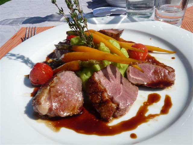 heute war ich am Bodensee, erst hier in Lindau (D) und danach in Arbon (CH) zum Essen.es gab: eine erfrischende WassermelonensuppeEntenbrust auf Erbsen-Kartoffelpurée mit Gemüse (Bild)Lavendeljoghurteis auf marinierten Beeren