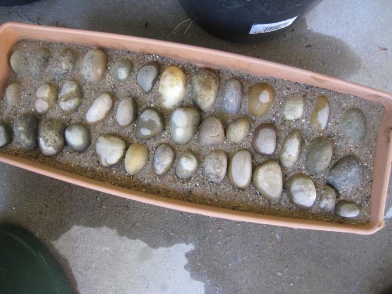 Bin nicht ganz zufrieden mit meinem Testmosaik im ausgedienten Blumenkasten :-\Wie in den Gärten des Paolo Pejrone sieht es jedenfalls noch nicht aus.Andere Steine? Aber woher?