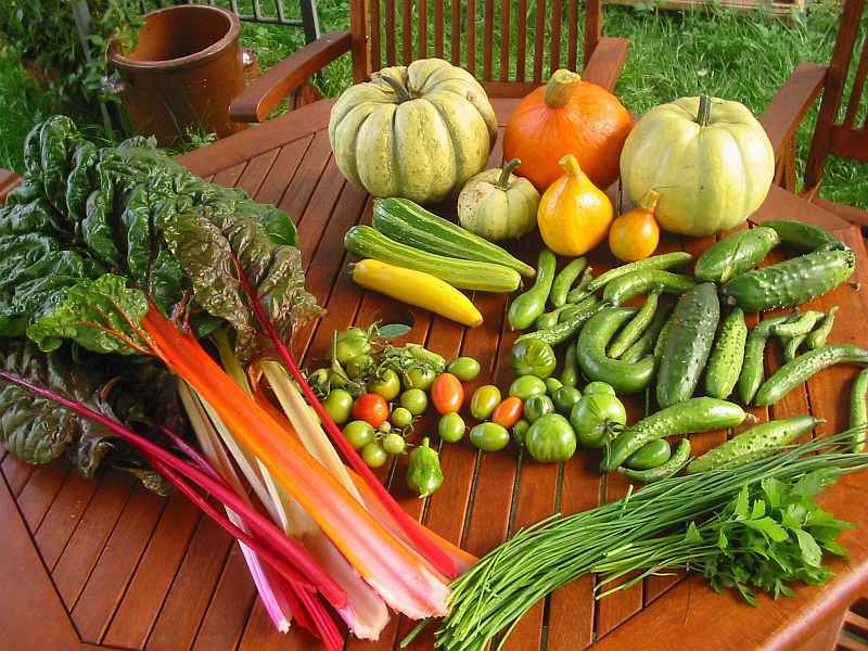 Paprika, die letzten Gurken und Zucchini. Die hatte ich extra groß werden lassen für Suppe.