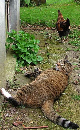 Vielleicht ist dies eine Aufforderung dort noch eine Ampelpflanze aufzuhängenoderein Wink mit dem Zaunpfahl mehr Nepeta cataria anzupflanzen. ;DHübscher Tiger, muy guapo!Der bereitet dir sicher viel alegria.die elegante Armhaltung der seltenen Pflanze