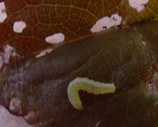 Zur Auswahl hätte ich gefunden:- Rosenblattrollwespe (Blennocampa pusilla)- Rosenblattwespe (Caliroa aethiops)- Rosenwickler (Teras forskaleana)- weißgegürtelte Rosensägewespe (Emphytus cinctus)Liebe Grüße, Barbara@Gülden: hat deine Raupe auch so ausgesehen? Und die Blätter, waren die auch so durchlöchert?