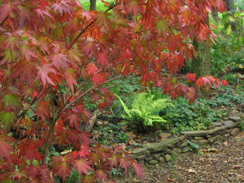 nach längerer betrachtung kann ich mich nicht entscheiden, wer hier protagonist ist ... ahorn oder farn.und das mäuerchen .. einfach stimmig. ich bin ganz begeistert, man kann die waldluft förmlich riechen.was sind das für bodendeckende stauden mit kleinen blättern rechts neben dem farn?wie heißt der farn (hab auch so einen, aber er ist nicht so hellgrün)?welchen wegbelag verwendest du?man würde gerne noch weitergehen (nach rechts). dieses foto macht neugierig! da hast du mit pflanzen gemalt