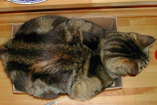 Viele Katzen haben doch diesen Tick, sich in die kleinsten kisten quetschen zu müssen....mein leo ist da keine ausnahme...er hat sogar ein weilchen in der kiste tief geschlafen. eh klar - dadurch dass rundherum eine stütze ist erübrigt sich auch die muskelanspannung und man kann vollständig relaxen