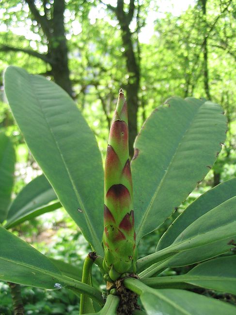 "Auf die Spitze getrieben" könnte man sagen.Der Austrieb von Rhododendron calophytum.