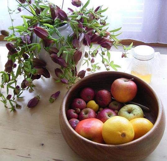 die Passionsblume, die aus Ihrem Topf über 4 m lange blühende Ranken gebildet hat, hole ich sicherheitshalbe jetzt auch rein, später wenn's richtig frostig wird, habe ich wahrscheinlich keine Zeit dazu. Da ich die Ranken heil nicht abbekomme, welch ein Jammer, muß das alles ab. Hier ein kleiner Ausschnitt.