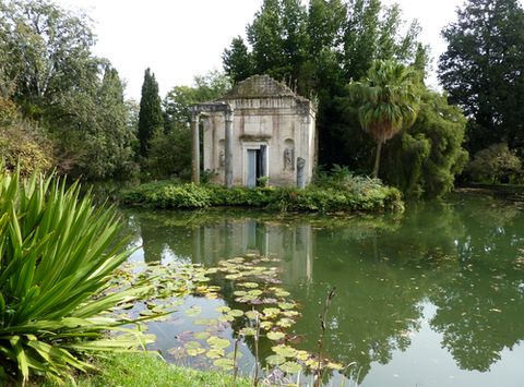 Seitlich von der Achse gibt es ausgedehnte Waldflächen mit Sichtachsen und altehrwürdigem Baumbestand.Mich begeisterte diese Magnolia grandiflora, die ich sie noch nie in so schöner Wuchsform gesehen habe.