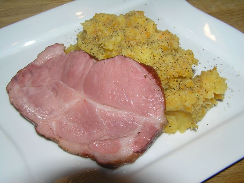 aella, ich liebe Steckrübenmus, sieht toll aus mit dem Kasselet dazu.Den Chicorée habe ich mit einen Rest Hähnchenbrust (2/3) und Karotten (1/3) den ich durch den Wolf getrieben habe gefüllt, in der Füllung hatte es noch Knoblauch und Schnittlauch.